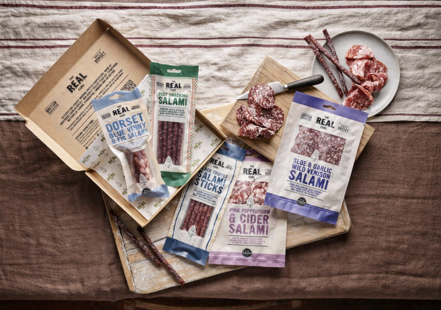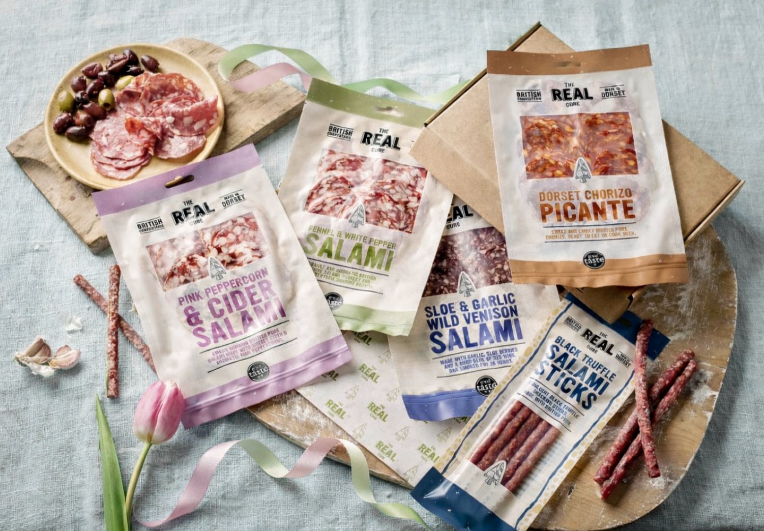 Based near Shaftesbury in North Dorset, The Real Cure uses traditional processes including curing, fermenting, smoking and air drying to create our Great Taste Award winning salami, chorizo and air dried hams. We carefully source high welfare and wild British meat. Our supply chain is fully traceable and we are meticulous about using the best quality, high welfare, British meat to produce our charcuterie. Our highly skilled team of charcutiers combine innovative and traditional techniques including cold smoking, curing and fermenting, before air drying in a custom ageing rooms.