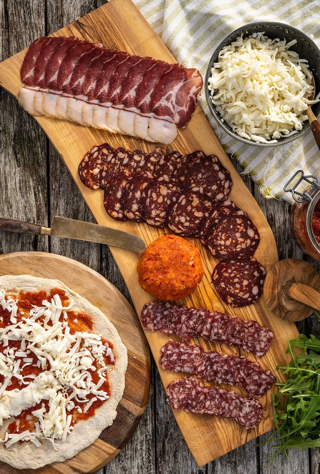 This selection of our most popular sliced cured meats, all made from wild venison. Products include Sloe and Garlic Wild Venison Salami, Wild Venison Chorizo and Wild Venison Pepperoni. This charcuterie selection is ideal for creating your own charcuterie sharing board at home.